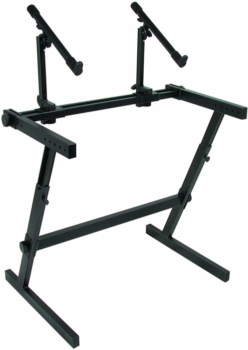 2段Z型のキーボードスタンド。上段は幅・高さをフレキシブルに、角度は90°から60°まで4段階に調節可能。下段は高さ67cmから85cmまで、7段階の調節ができます。