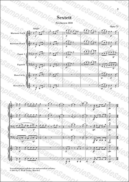 ベートーヴェン/六重奏曲 変ホ長調 作品71 & 行進曲 WoO 29【スタディスコア】