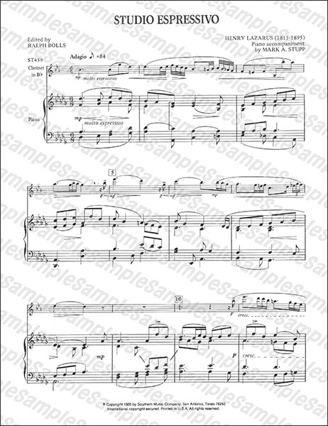 ラザルス/スタディオ・エスプレッシーヴォ 【Clarinet&Piano】