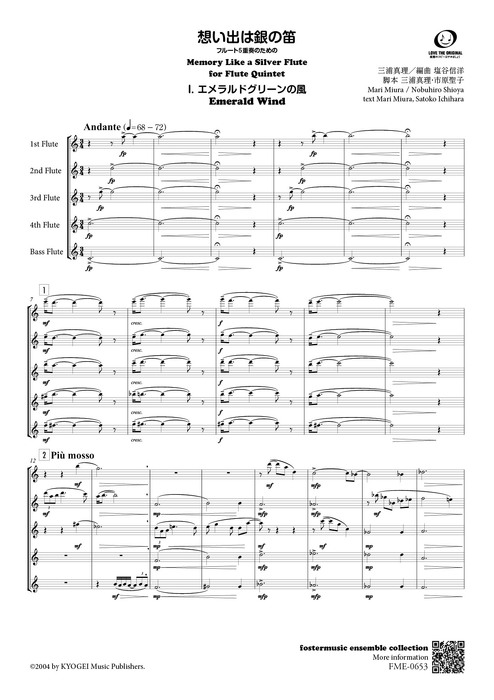 三浦真理/想い出は銀の笛~フルート5重奏のための