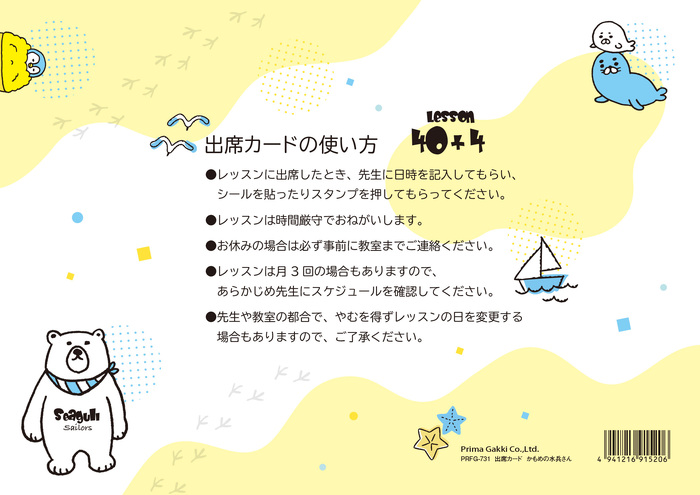 ゆる~いかもめさんと仲良しなおともだちの出席カードです。