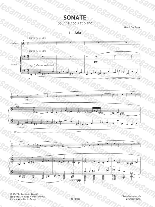 デュティユー/オーボエ・ソナタ【Oboe&Piano】