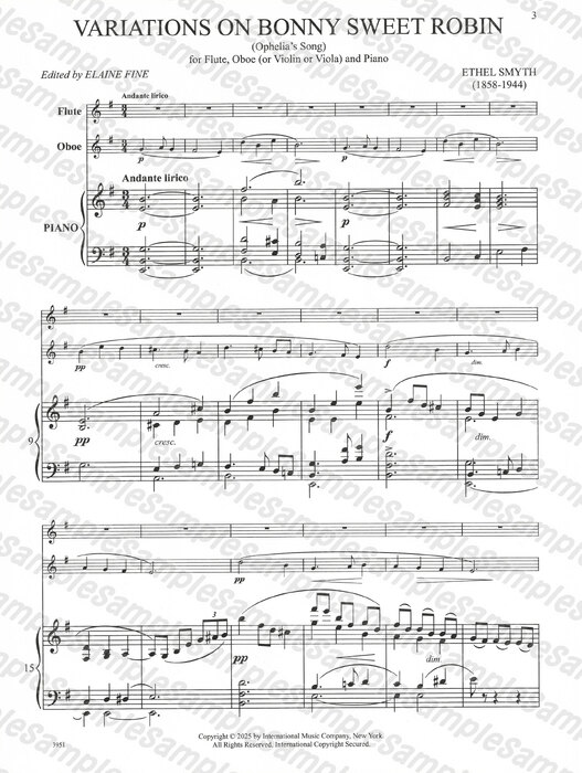 スマイス/「ボニー・スウィート・ロビン」による変奏曲 (オフィーリアの歌) 【木管二重奏】
