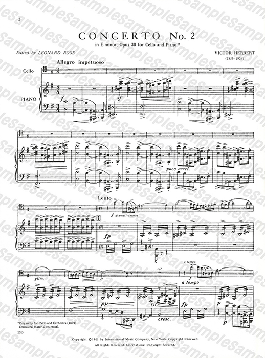 ハーバート/チェロ協奏曲 第2番 ホ短調 作品30 【Cello&Piano】