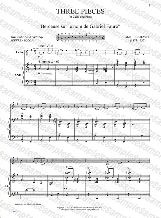 ラヴェル/3つの小品 【Cello&Piano】