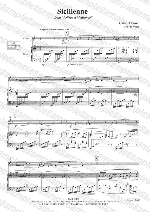 フォーレ/シシリエンヌ (「ペレアスとメリザンド」より) 【Horn&Piano】