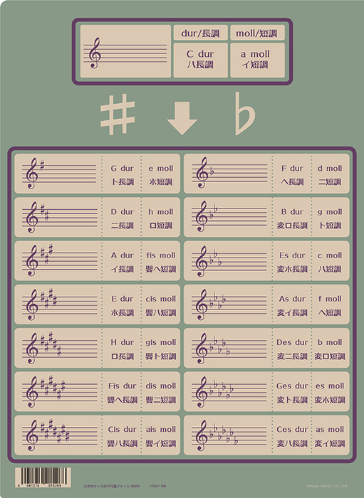 【表面】:平行調図 【裏面】:調号、シャープ系、フラット系大人気楽典クリアファイルシリーズが大きなサイズで登場。A4よりも少し大きめの菊倍サイズ(304mm×227mm)が収納できます。